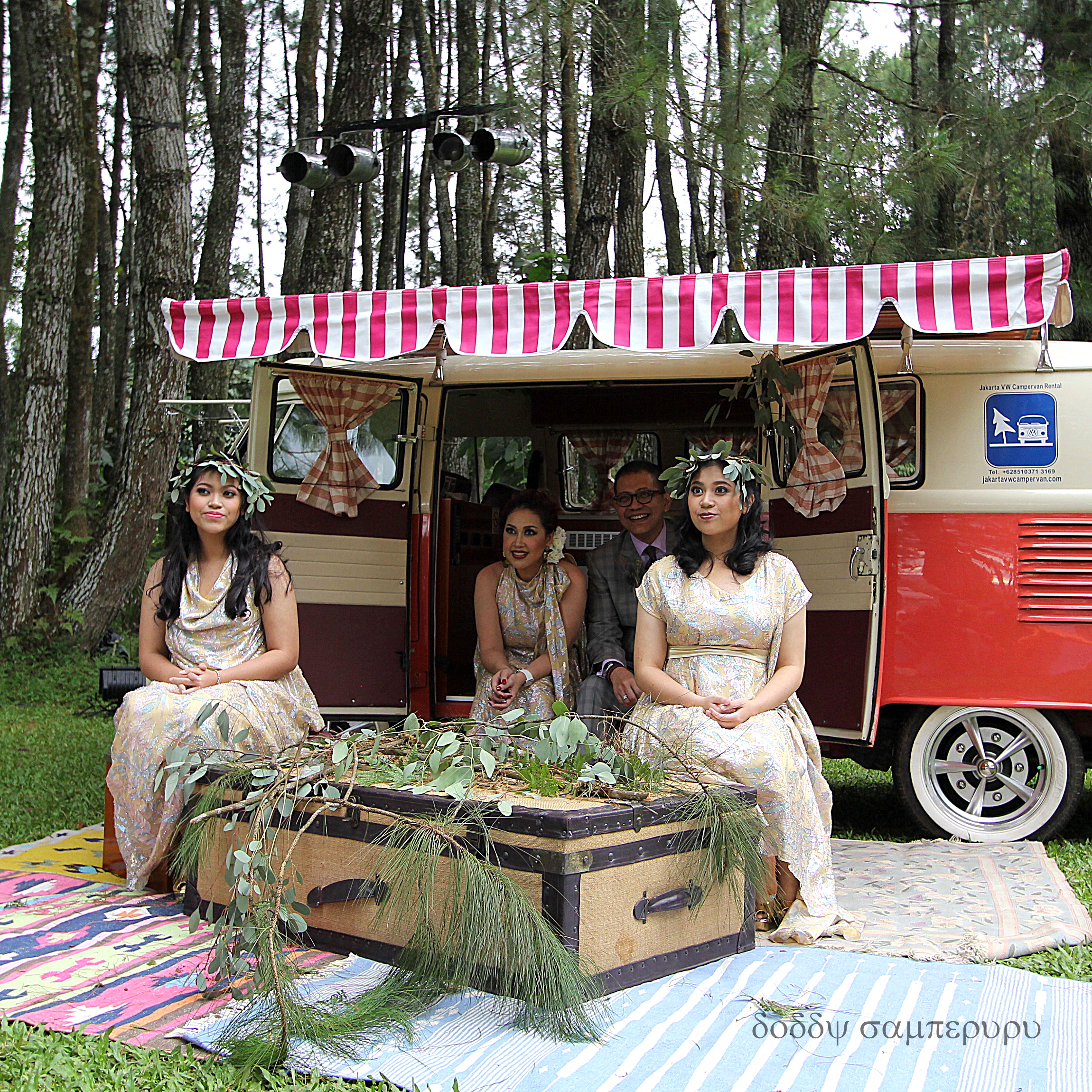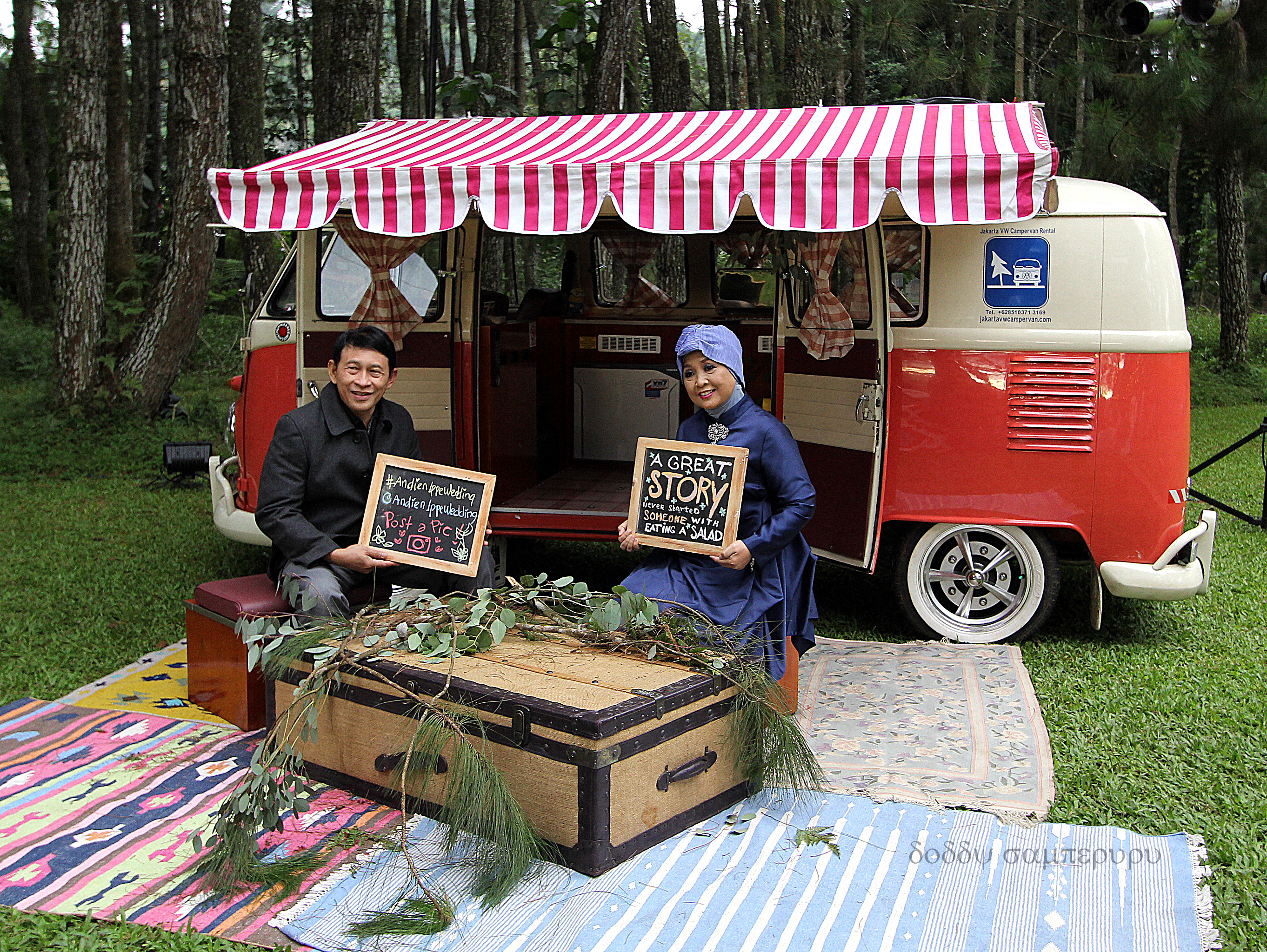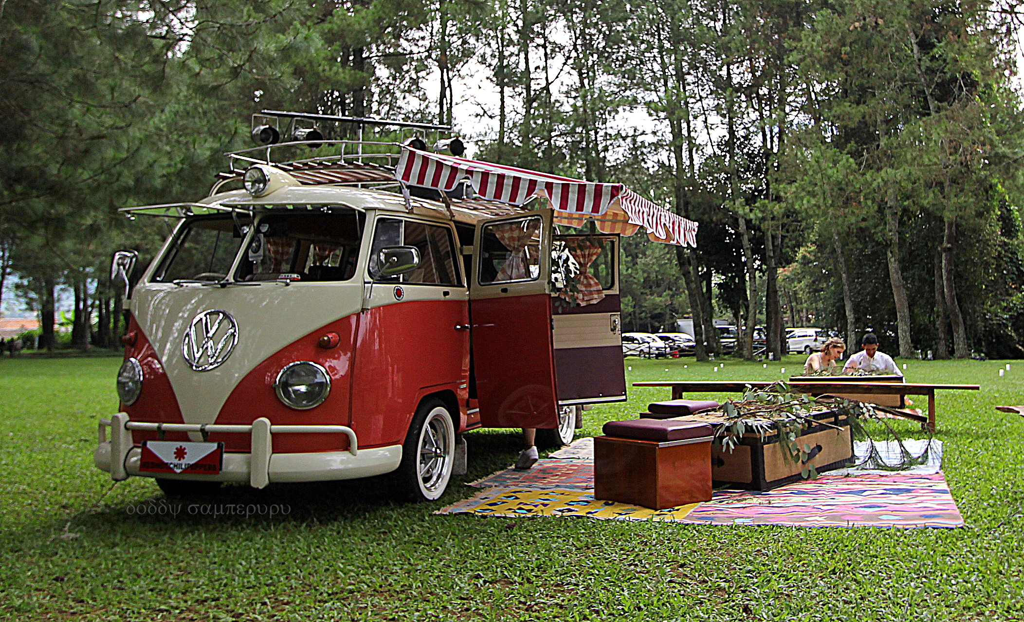 Jakarta VW Campervan provided the Red Hot Chili Peppers VW Campervan for a photo-booth during the wedding, as part of decoration services by Airy Designs. The event took place all day long at the Pine Forest, a cool camping-glamping ground at 1200asl several kilometers from Maribaya, north of Bandung. This is a photo essay to show the wedding & the vintage photo-booth using a classic VW Campervan.