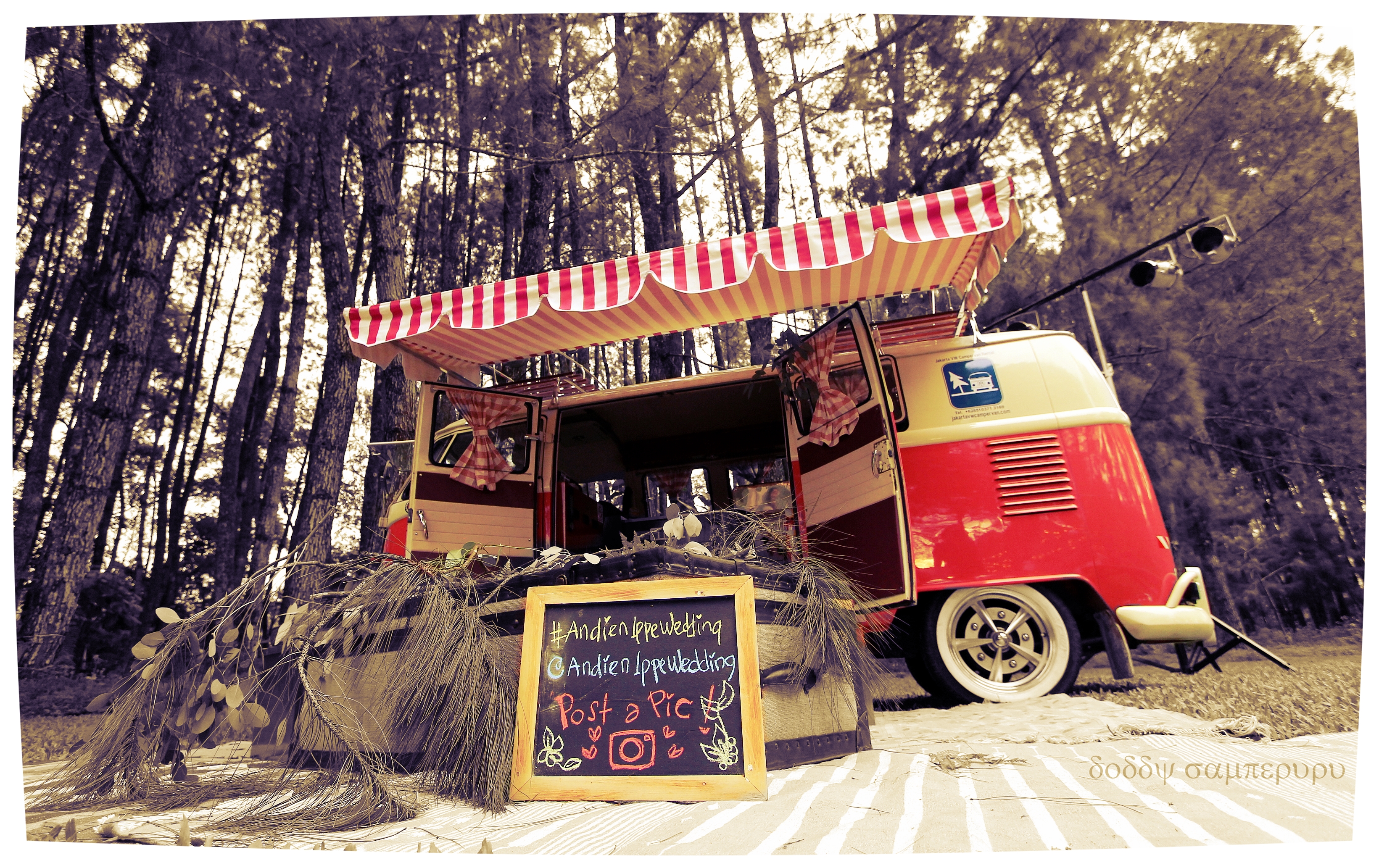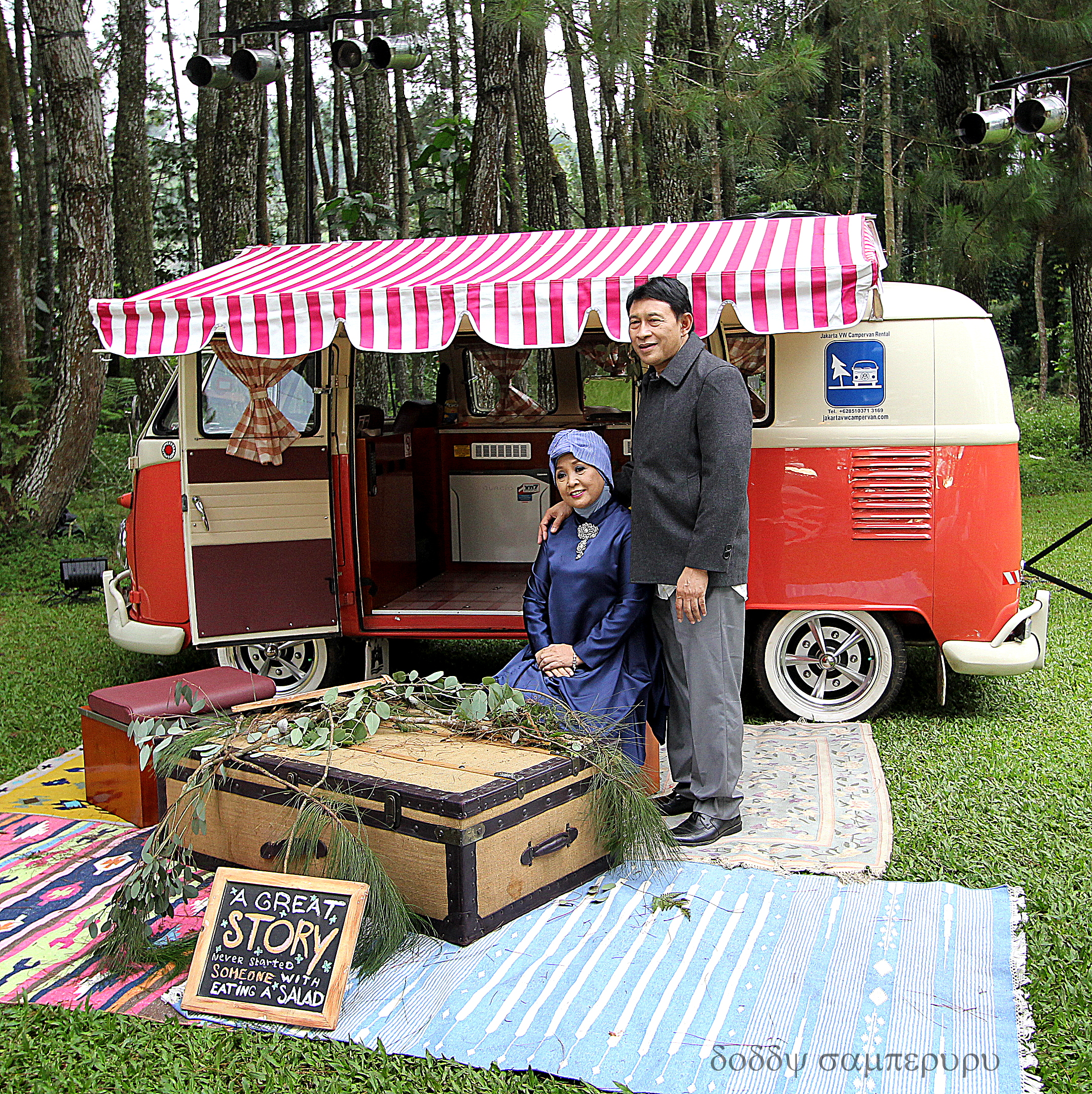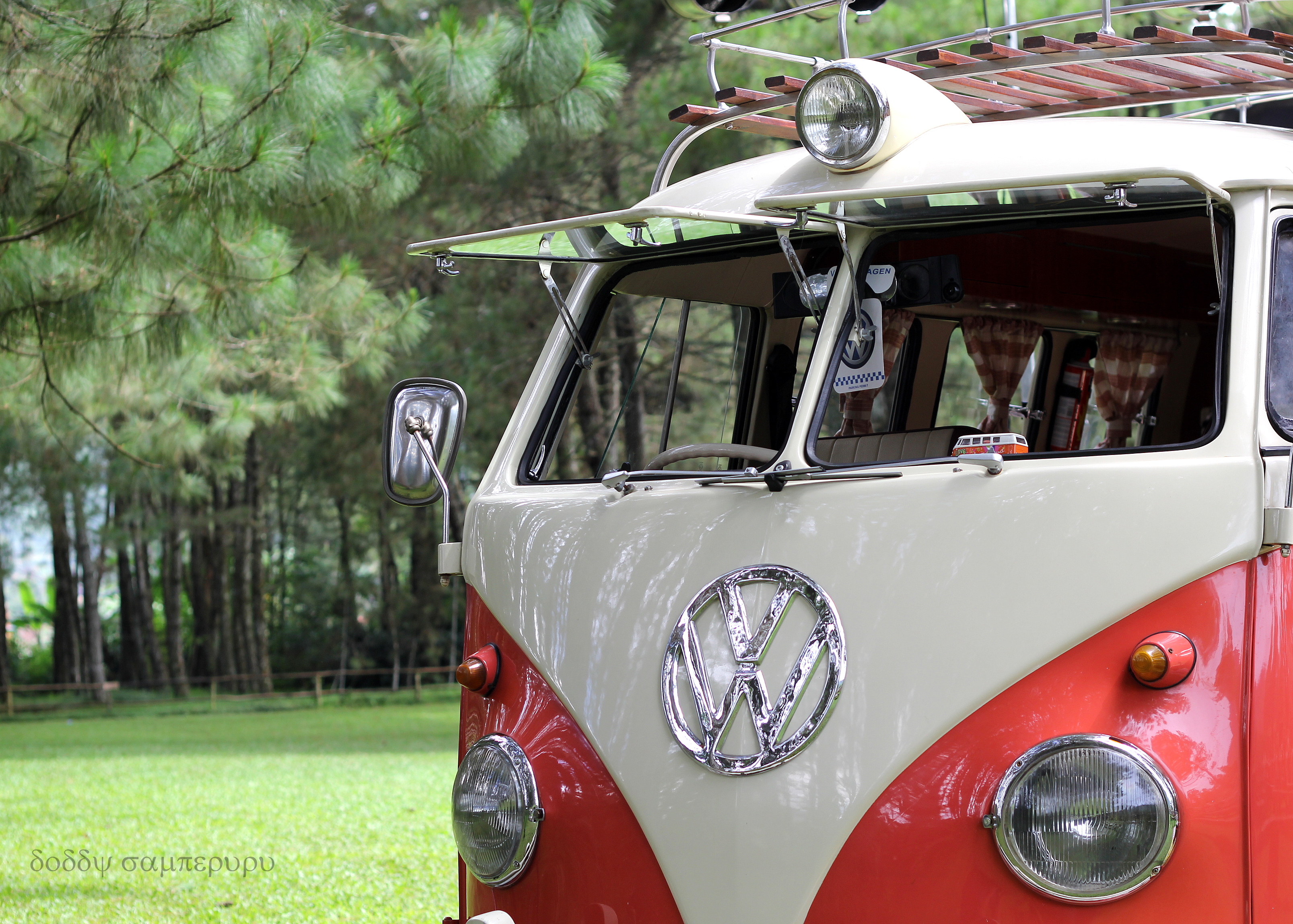 Jakarta VW Campervan provided the Red Hot Chili Peppers VW Campervan for a photo-booth during the wedding, as part of decoration services by Airy Designs. The event took place all day long at the Pine Forest, a cool camping-glamping ground at 1200asl several kilometers from Maribaya, north of Bandung. This is a photo essay to show the wedding & the vintage photo-booth using a classic VW Campervan.