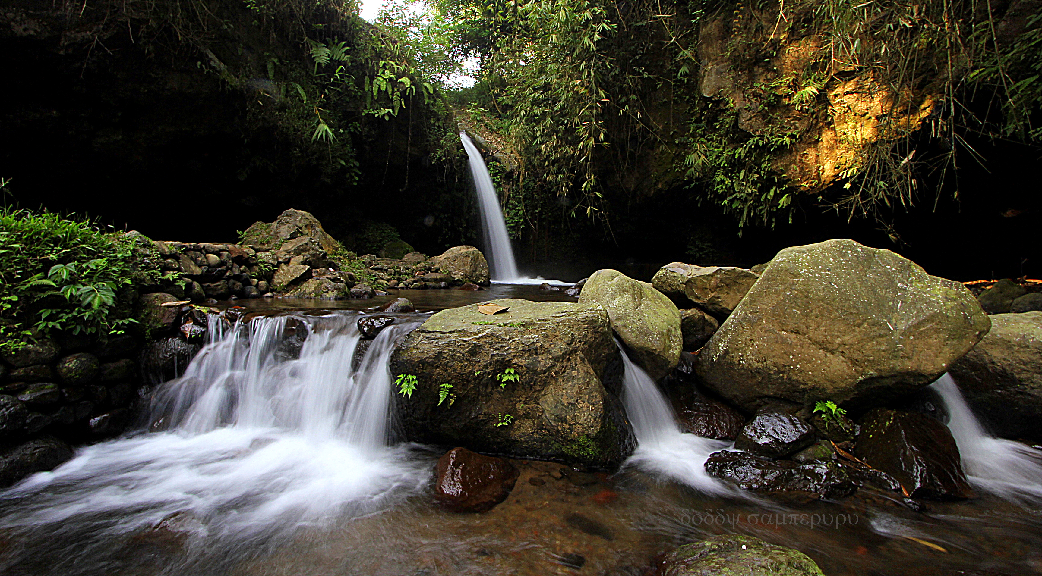 From there, walking down the hill about 5-10mins, we will get to the 3rd water fall. It’s called Curug Goa Badak (Curug = waterfall, Goa = cave, Badak = rhino, so please interpret yourself). This is the most downstream waterfall out of three; the biggest one, less than 10m tall & the only one with a shallow pool beneath it for us to swim, to play water or to bath. Since it is the closest one to the parking lot, the waterfall is the most crowded one with visitors.