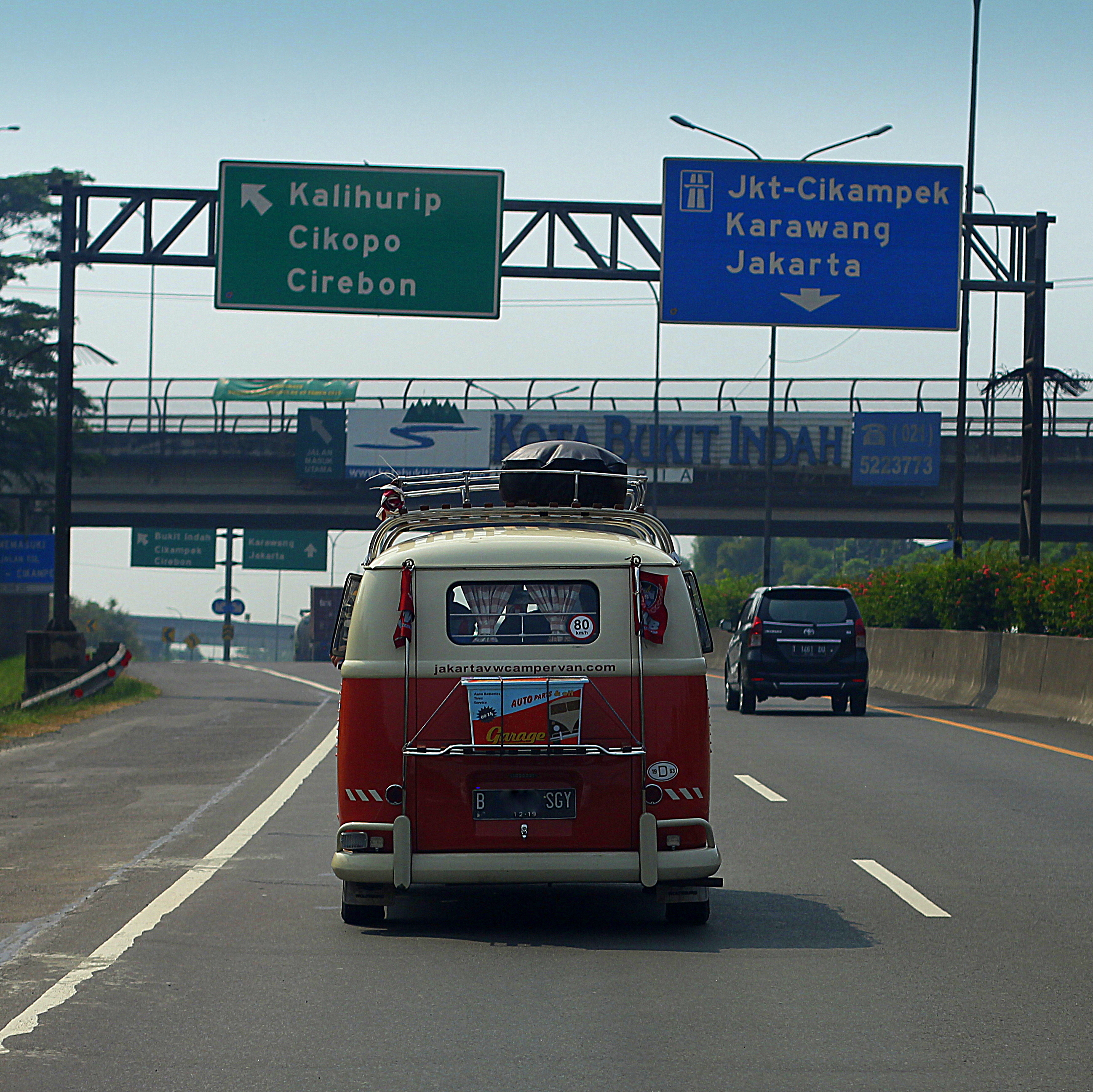 Red Hot Chilli Peppers campervan at the Cikampek toll road – Campervan Red Hot Chilli Peppers di jalan toll Cikampek.