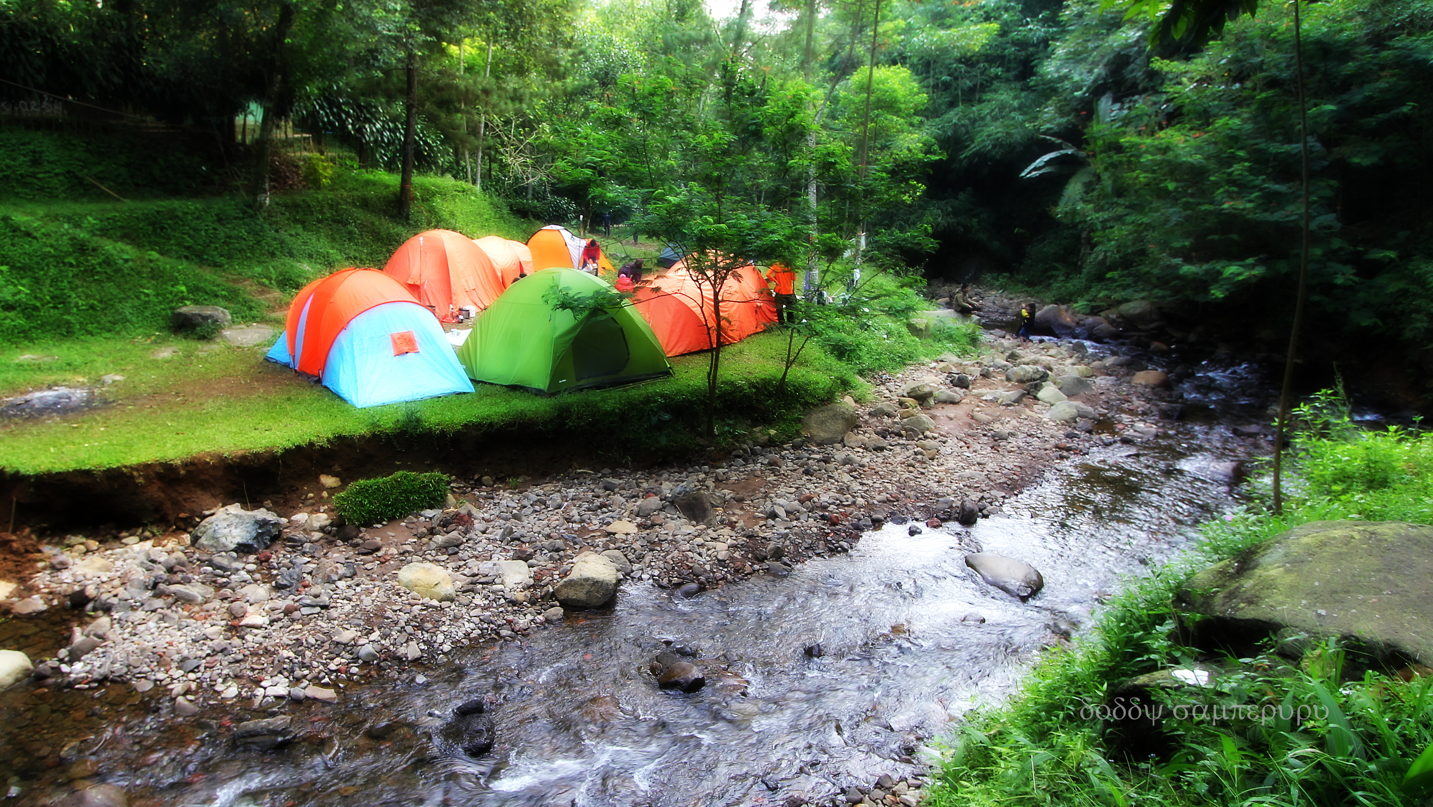 The riverside camping ground near by Curug Sawer – Area camping pinggir sungai di dekat Curug Sawer.