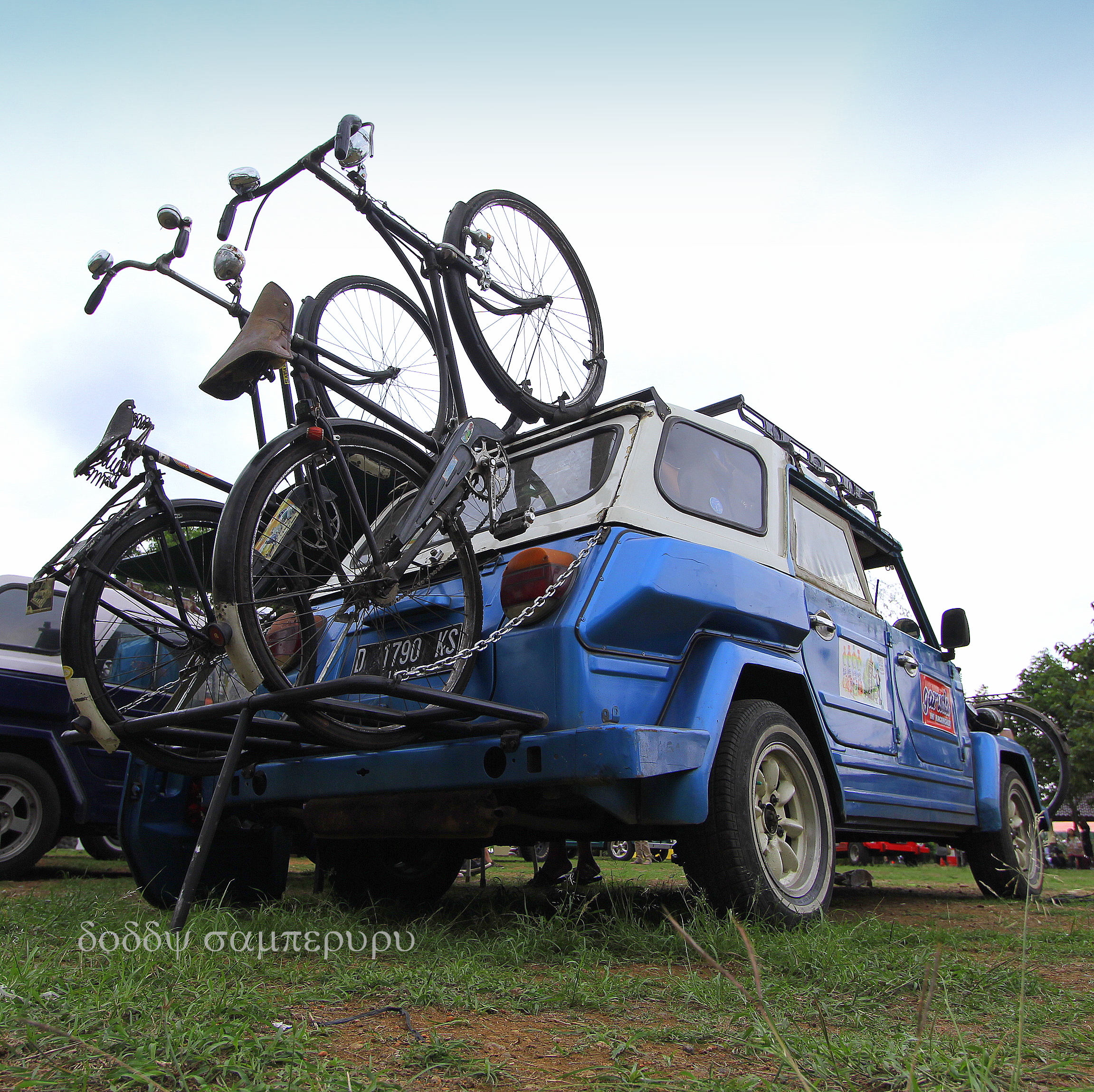 A Safari carrying two vintage bicycles using a custom carrier. This is a member of Komunitas Safari Bandung, one of the biggest VW Safari communities in Indonesia. Photo: Civoc Cirebon, Kuningan, Nov 2014 – Sebuah VW Safari mengangkut dua buah sepeda Onthel di rak buatan sendiri. Mobil ini adalah anggota Komunitas Safari Bandung (KSB), salah satu komunitas VW Safari terbesar di Indonesia. Foto: Civoc Cirebon, Kuningan, Nov 2014…