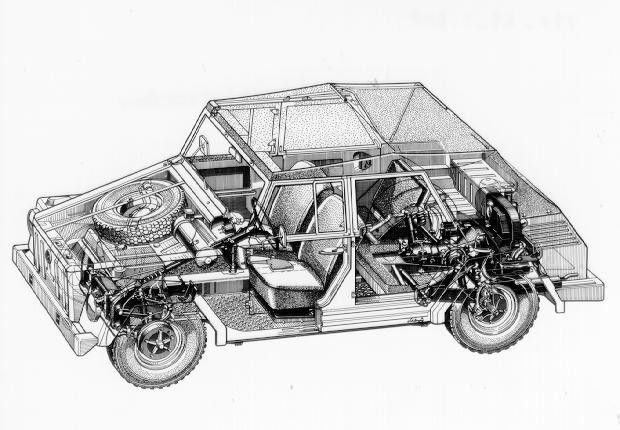 The Type 181 used the engine, transmission and mechanics from the Beetle, plus the rear suspension of the Split Screen Bus, mounted on a wider Karmann Ghia convertible chassis for extra strength and stability. A body that looked like it had been knocked together by a toddler out of cardboard boxes was then plonked on top. Actually, there was method in the austere madness, for the Type 181 had to be tough, yet simple, and easy to work on under the tricky circumstances of unpleasant people trying to kill you. For example, the dashboard was hinged, meaning that if the electrics went wrong it could be flipped open so they could easily be tinkered with. The original Kübelwagen had excelled itself from the frozen wastes of Russia to the scorching sands of North Africa, so all Volkswagen really needed to do was update it. Options such as a limited slip differential made the Type 181 even more adept off road, especially considering it stuck to two-wheel drive instead of four. However, the vehicle was so lightweight that being an axle short in the traction department didn’t really matter. And if you needed to shed more pounds, the flat doors could simply be pulled off their hinges.